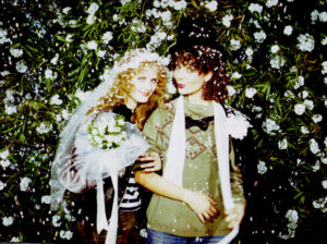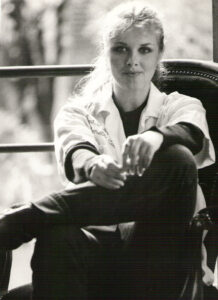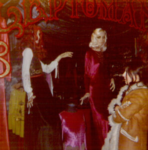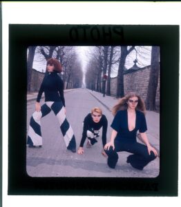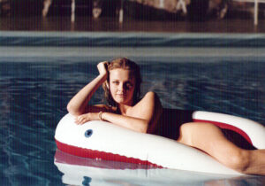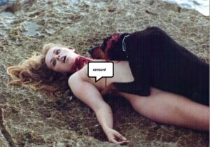 Cette photo que j’aime particulièrement (je la trouve très cinématographique), pour la petite anecdote, a été faite par Riccardo Schicchi qui n’était autre que le petit ami d’Ilona Staller la « Cicciolina ». Je ne l’ai pas bien connue, simplement, avec elle, nous avons partagé Luce Grégory et moi  quelques repas et soirées en boîtes de nuit, invitées par notre agence d’acteurs.