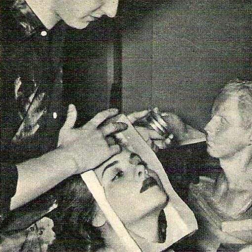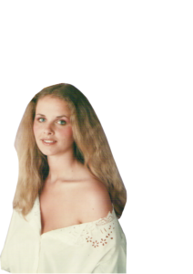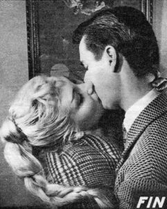 Mirella d’Angelo et moi après la séance de maquillage devions nous rendre dans le jardin de Cinecittà pour être photographiées devant un arbre à fleurs blanches.  Cette photo devant servir d’affiche du film et éventuellement pour des boîtes de chocolat ou de bonbons. Ce ne fut pas le cas vu qu’une autre affiche a remplacé celle-là. Mais par contre on la verra dans une scène du film.