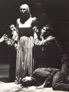 – Maria Casarès en plein dialogue avec Fernand Ledoux, les comédiens en arrière-plan tentaient de contenir un fou rire naissant.Peut-être qu’eux aussi avaient du mal à comprendre…(je plaisante)