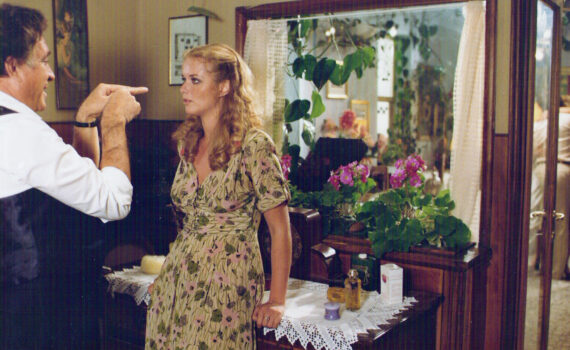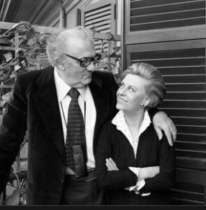 Donc pluie veut dire pas de photo ce qui pourrait encore retarder le début du tournage. Mais Fellini ne se décourage jamais. Il appelle du personnel des jardins de Cinecittà, fait déterrer l’arbre en question pour le mettre dans un hangar. Eclairages réglés, Mirella et moi installées devant l’arbre, une fois les photos faites, l’arbre sera replanté dans le jardin.