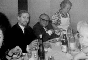 Tournée Théâtrale de « LA PARISIENNE » à l’issue de la pièce, fondue pour la troupe à la maison comme à chaque fois que mon papa passait par notre ville. EDWIGE FEUILLERE, HENRI VILBERT…et HENRI GUISOL qui nous fera des tours de magies et de transmission de pensée qu’il apprendra à mon papa durant la tournée. Soirée sympathique, ils vont raconter pas mal de blagues et s’apercevoir un peu tard qu’il y avait une enfant de 9 ans et demi ; mais je vais à mon tour les faire rire en racontant une blague…