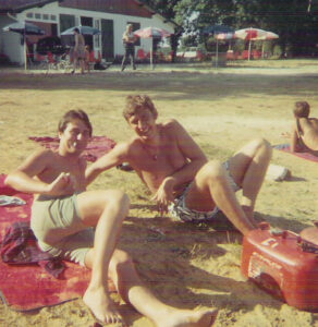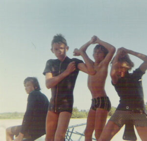 Mon papa avait loué avec ses potes, une villa à St Palais près de Royan. J'y ai passé de superbes vacances et appris par la même occasion sur le lac de Cadeuil à faire du ski nautique (non sans mal) et surtout aidée par 2 des petits jeunes en combinaisons dont l'un à 14 ans était champion junior des USA. Il faisait avec son frère du ski nautique (sans ski), sur la plante des pieds.