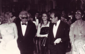 VITTORIO CECCHI GORI travaillait avec son père Mario, grand producteur de cinéma. Notre agence « La Publy Service » nous fait avoir un rdv avec le fils. Il faut bien qu’on se fasse connaître. Luce Gregory se promenait toujours avec un jeu de backgammon, c’était très à la mode et Vittorio ne savait pas y jouer, alors nous lui avons appris dans son bureau.