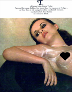 A ce moment précis comme par hasard, Gérard est entré dans le studio pour voir les essais ou pour saluer le réalisateur je ne sais pas. Tout ce que je sais, c’est quand il m’a vu nue, il s’est approché de moi, ma prise dans ses bras, et m’a fait des bisous dans le cou.